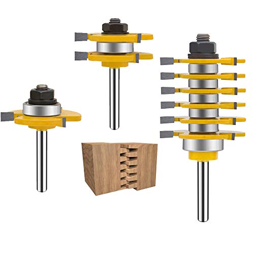 redbubble TAIWAIN 1/4 Inch Shank Router Bit Set 6 Finger Joint Woodworking Cutter 3PCS, Reversible Finger Glue Joinery Router Bits, Wood Miter Carbide CNC Cutting Tool (F-Finger)